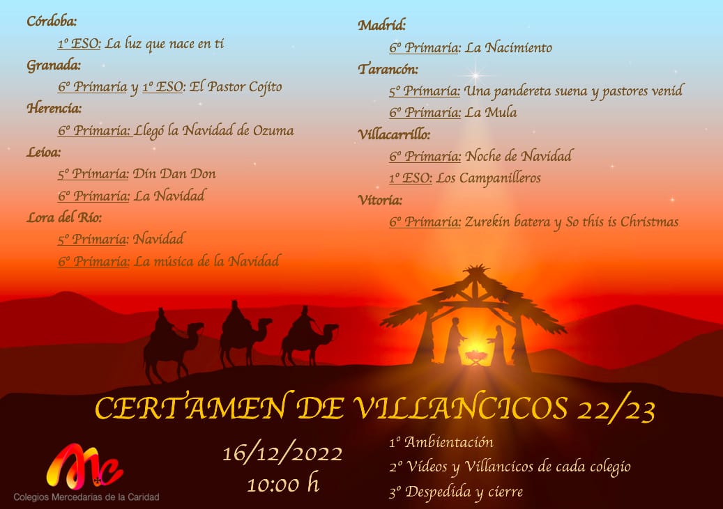 El viernes 16 de diciembre tuvo lugar el XI certamen de villancicos mercedarios. Se hizo un encuentro online con los demás colegios mercedarios. Los alumnos de 6º y 1º de ESO de nuestro colegio de Granada interpretaron el villancico "El pescador cojito", recordando que la Navidad es sobre todo sencillez y humildad.